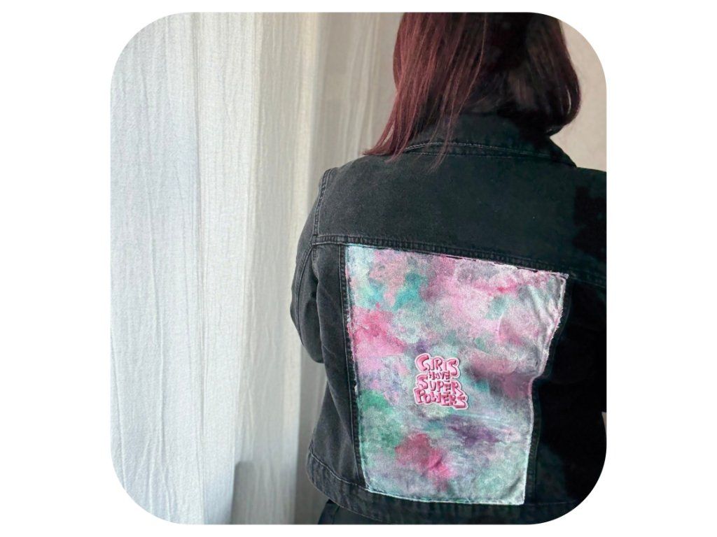 Další mnou Upcyklovaná bunda s příběhem. Na této bundě jsem poprvé zkoušela jinou techniku malby a barvy jsem kombinovala čistě náhodně! Chtěla jsem, aby černá barva bundy působila elegantně, sportovně a dala se kombinovat. Ale taky aby nepůsobila tak tvrdě a představovala naši ženskou jemnost, krásu a vnitřní sílu. Protože Girls have super power!